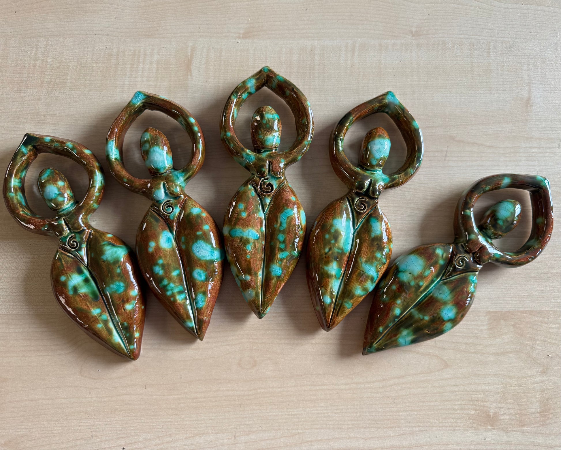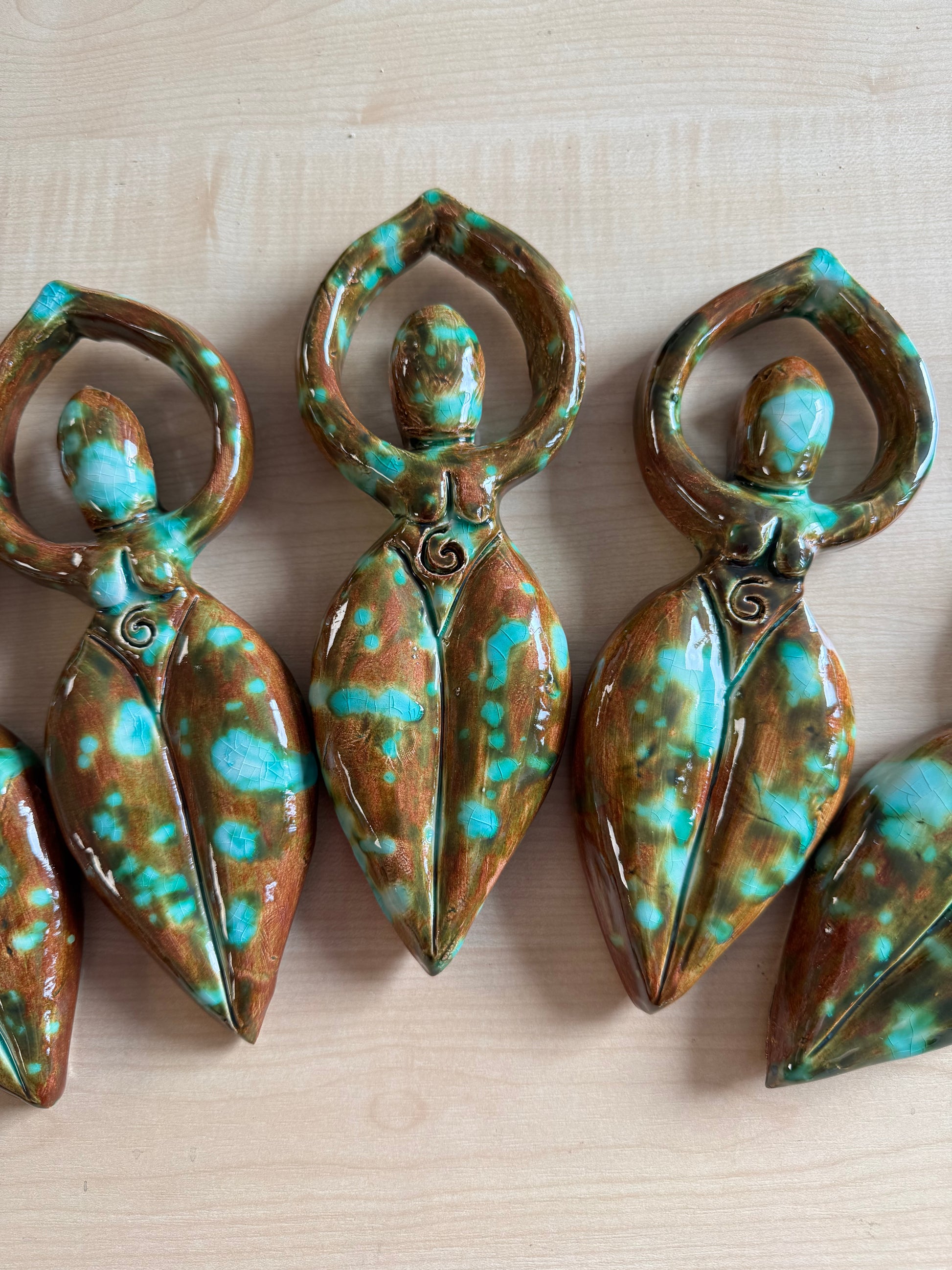 This wall plaque is made from earthenware clay with a lovely forest glaze,