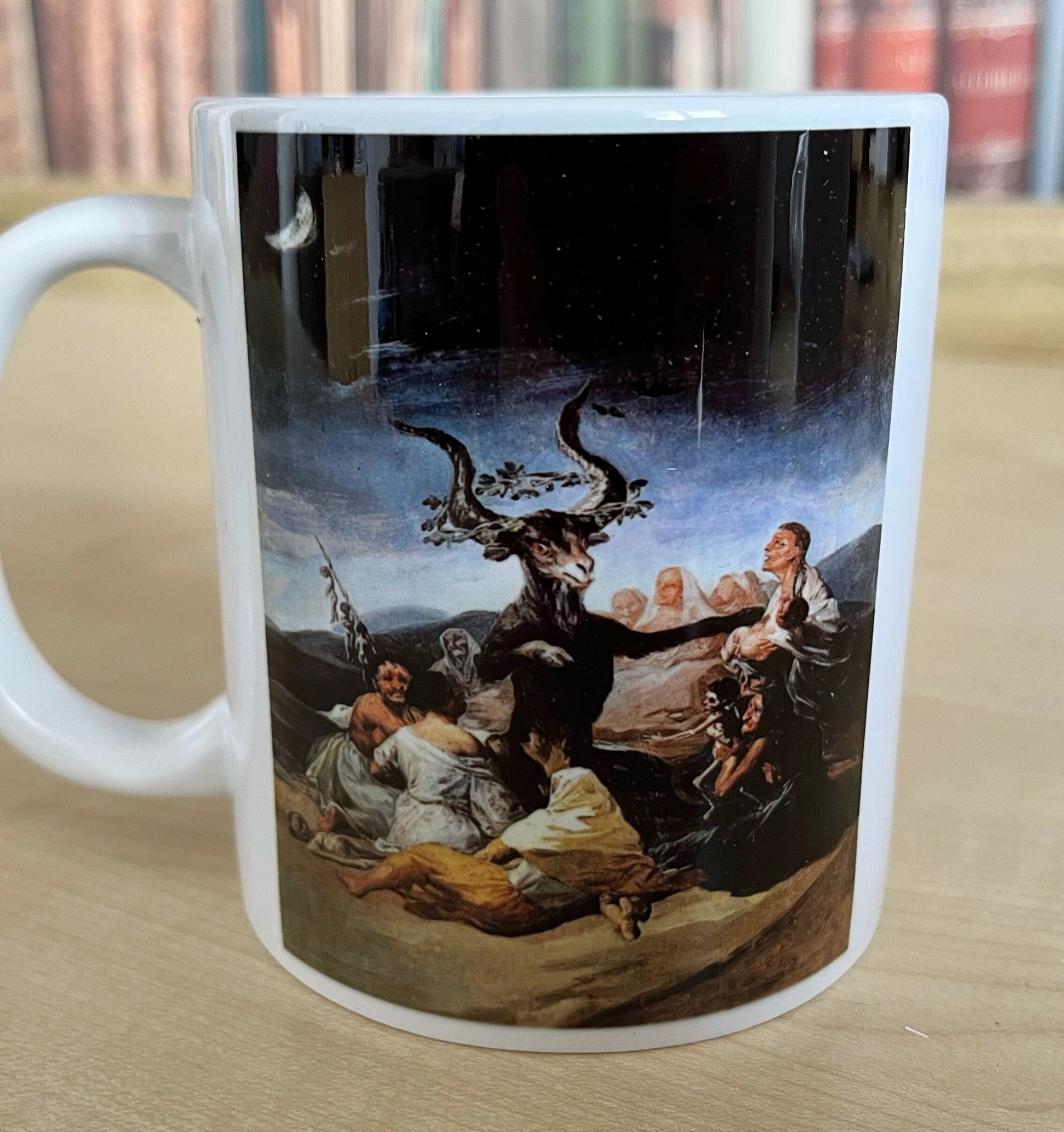 11oz standard size Mug featuring an image of Witches Sabbath by Goya (1798)